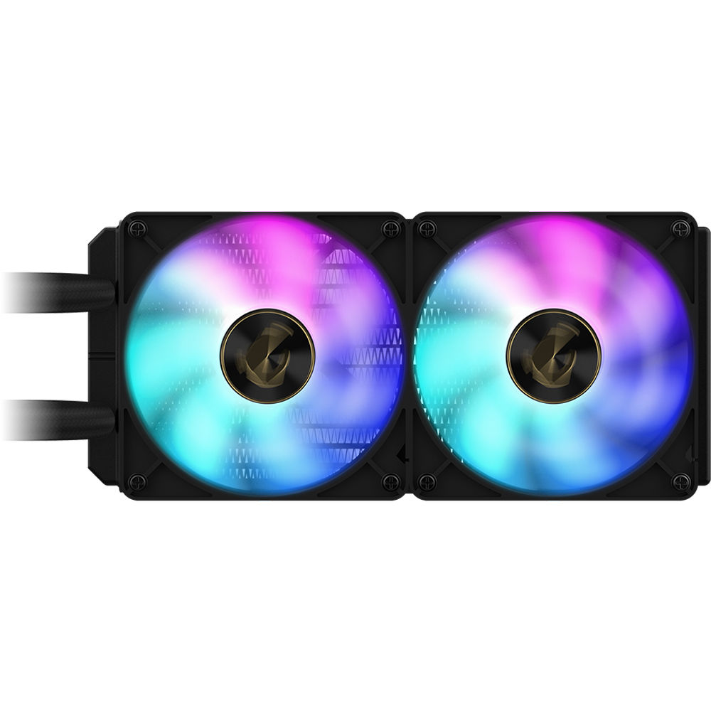Ce modèle est équipé d’un refroidissement hybride, associant un watercooling équipé d’une plaque froide en cuivre et d’un radiateur en aluminium de 240 mm (+ 2 ventilateurs RGB adressables 120 mm) pour refroidir le processeur graphique, les puces mémoires et les MOSFETs. Les tubes en FEP tressé permettent une installation aisée, et assurent une étanchéité totale du système.